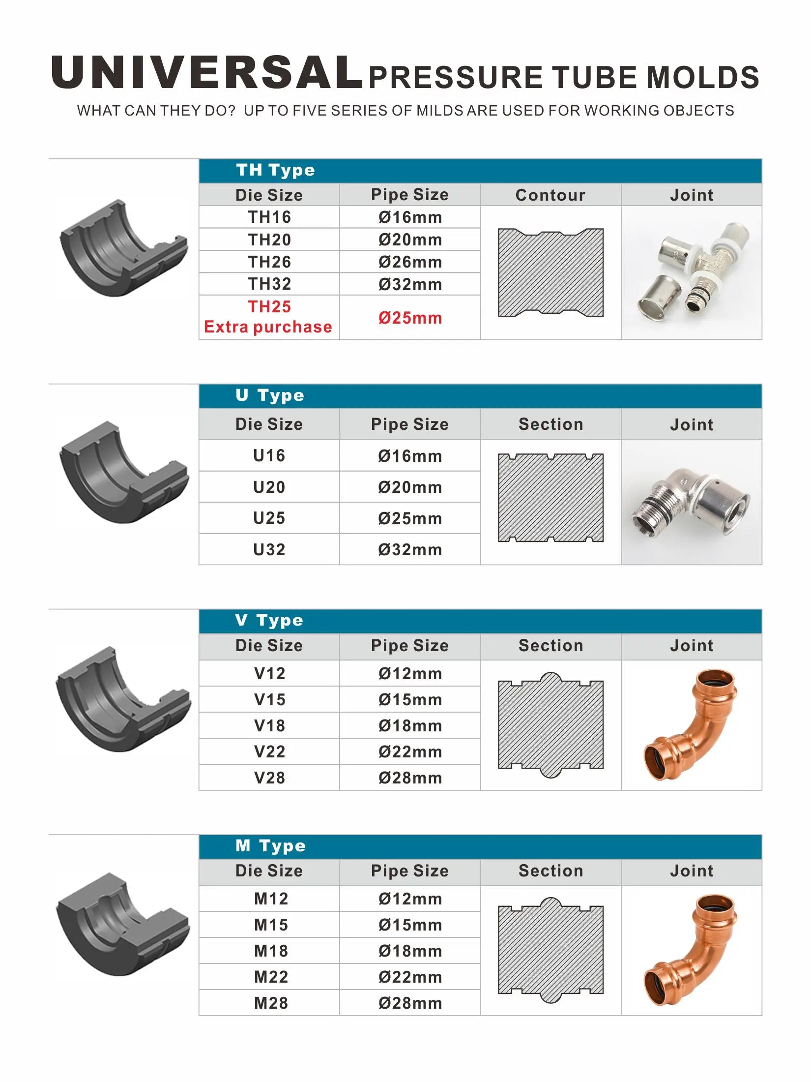 Hydraulic Pipe Crimping Dies TH,VAU, U,V,M Tool Dies For Copper/ Aluminum Plastic Pipe/ SS Pipe Crimping(Only Dies)